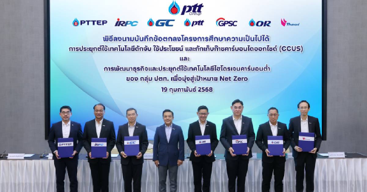 กรุงเทพฯ 20 ก.พ.- กลุ่ม ปตท.ลงนามบันทึกข้อตกลงโครงการศึกษาความเป็นไปได้การประยุกต์ใช้เทคโนโลยีดักจับ ใช้ประโยชน์ และกักเก็บก๊าซคาร์บอนไดออกไซด์ (Carbon Capture Utilization and Storage: CCUS) และบันทึกข้อตกลงการพัฒนาธุรกิจและประยุกต์ใช้เทคโนโลยีไฮโดรเจนคาร์บอนต่ำของกลุ่ม ปตท. เพื่อมุ่งสู่เป้าหมาย Net Zero