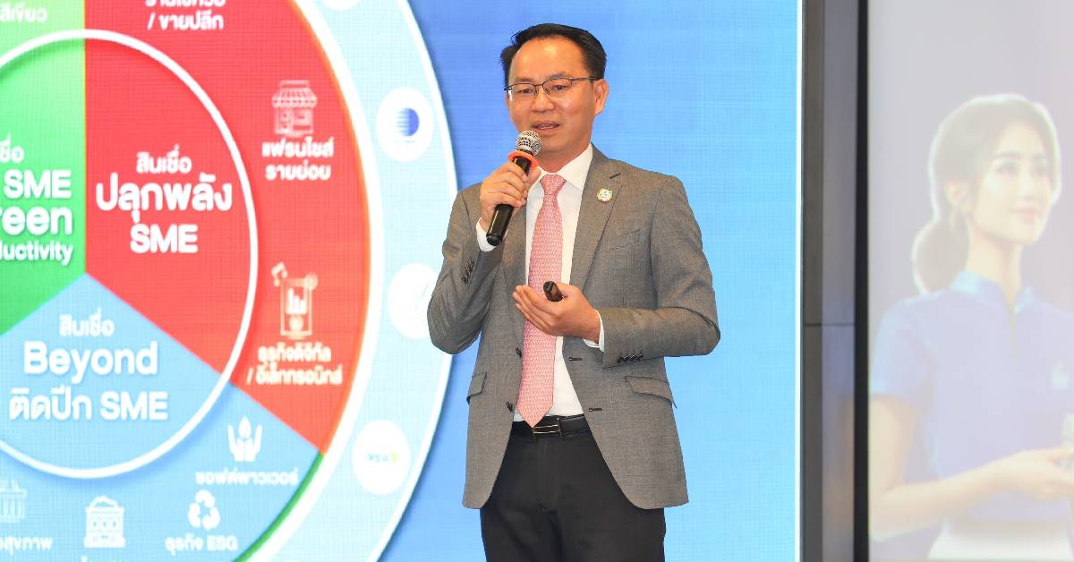 ครอบคลุมทุกกลุ่มธุรกิจ จุดเด่นอัตราดอกเบี้ยพิเศษเพียง 3%ต่อปี คงที่ตลอด 3 ปีแรก ผ่อนชำระนานสูงสุด 10 ปี ได้แก่ 1.สินเชื่อ “SME Green Productivity” สนับสนุนใช้พลังงานสะอาด และมุ่งสู่อุตสาหกรรมสีเขียว 2.สินเชื่อ “ปลุกพลัง SME” เปิดโอกาสผู้ประกอบการเอสเอ็มอีรายเล็ก รายได้ต่อปีไม่เกิน 2 ล้านบาท เข้าถึงแหล่งทุนในระบบ และ 3.สินเชื่อ “Beyond ติดปีก SME” ส่งเสริมผู้ประกอบการเอสเอ็มอีที่มีรายได้ต่อปีมากกว่า 2 ล้านบาทขึ้นไป