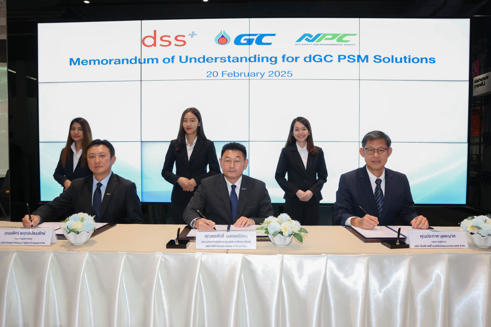นายพรศักดิ์ มงคลตรีรัตน์ ประธานเจ้าหน้าที่ปฏิบัติการ กลุ่มปฏิบัติการเพื่อความเป็นเลิศบริษัท พีทีที โกลบอล เคมิคอล จำกัด (มหาชน) (GC) กล่าวว่า GC มีประสบการณ์ด้าน PSM มายาวนานกว่า 8 ปี ซึ่งได้ร่วมมือกับพันธมิตรที่แข็งแกร่งอย่าง dss+ ในการวางรากฐานที่มั่นคงในด้าน PSM และช่วยพัฒนาศักยภาพและองค์ความรู้ให้กับบุคลากรของเรา และ NPC บริษัทในกลุ่ม GC ที่ทำธุรกิจเป็นที่ปรึกษาและฝึกอบรมด้านความปลอดภัยอาชีวอนามัยและสิ่งแวดล้อมมายาวนานถึง 20 ปีทำให้เข้าใจความต้องการของตลาดจึงได้มาศึกษาโอกาสในการรวมกลุ่มเป็นพันธมิตรกันเพื่อทำธุรกิจ PSM Solutions คุณภาพระดับ world class ให้กับภาคอุตสาหกรรมในประเทศไทย โดยมีวัตถุประสงค์เพื่อยกระดับมาตรฐานการจัดการความปลอดภัยและเป็นผู้นำการขับเคลื่อนการสร้างวัฒนธรรมความปลอดภัยให้กับสถานประกอบกิจการทั่วประเทศเพื่อให้คนงานทุกคนมาทำงานและกลับบ้านอย่างปลอดภัยทุกวัน”