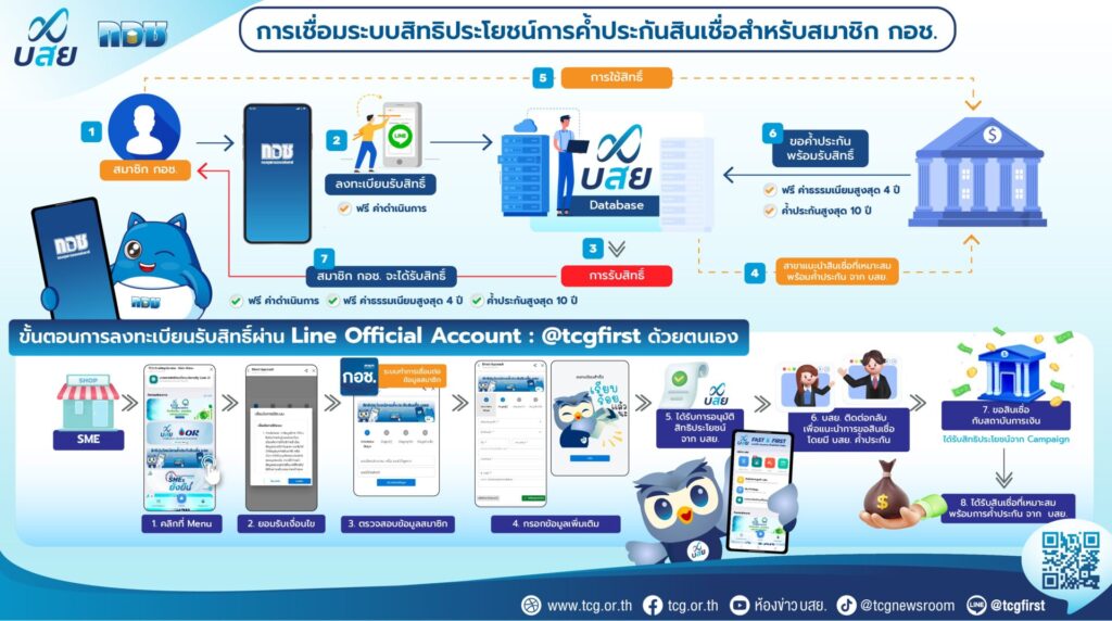 ขณะที่กลุ่มอาชีพอิสระและผู้ประกอบการรายย่อยที่เป็นสมาชิก กอช. ที่ขาดหลักประกันสินเชื่อสามารถเข้าถึงสินเชื่อผ่านกลไกการค้ำประกันของ บสย. ได้เช่นกัน สำหรับสิทธิประโยชน์ด้านการค้ำประกันสินเชื่อที่ กลุ่มอาชีพอิสระ และผู้ประกอบการรายย่อย ที่เป็นสมาชิก กอช. จะได้รับในระยะเริ่มต้น คือ เมื่อยื่นขอสินเชื่อจากสถาบันการเงิน โดยใช้ บสย. ค้ำประกันสินเชื่อ จะได้รับสิทธิ์ ฟรี! ค่าดำเนินการค้ำประกัน และฟรีค่าธรรมเนียมสูงสุด 4 ปี โดยมีระยะเวลาค้ำประกันสูงสุดถึง 10 ปี โดยสมาชิก กอช. สามารถลงทะเบียนรับสิทธิ์ และยืนยันการเป็นสมาชิก กอช. ได้ที่ LINE OA : @tcgfirst และสามารถใช้สิทธิ์ในการขอสินเชื่อจากสถาบันการเงินถึงวันที่ 30 มิถุนายน 2568 พร้อมเข้ารับการอบรมด้านธุรกิจกับ บสย. ฟรี! นอกจากนี้ บสย. ยังเปิดให้ SMEs สามารถเข้ามาตรวจสุขภาพทางการเงิน พร้อมจองคิวขอรับคำปรึกษาทางการเงินได้ที่ LINE OA : @tcgfirst ฟรี! ไม่มีค่าใช้จ่าย สอบถามข้อมูลเพิ่มเติมได้ที่ บสย. Call Center โทร. 02-890-9999