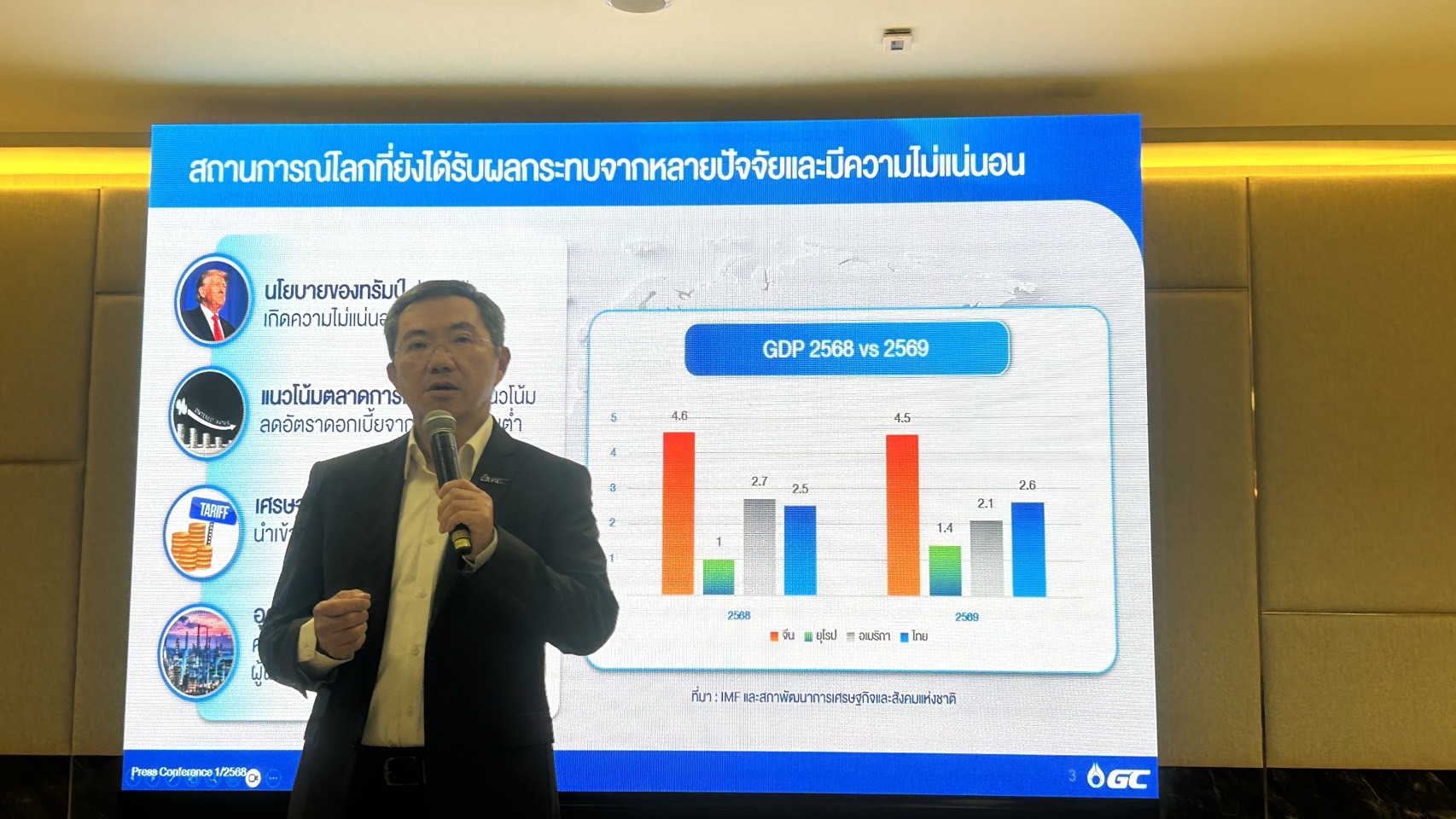 นายณะรงค์ศักดิ์ จิวากานันต์ ประธานเจ้าหน้าที่บริหาร GC กล่าวว่า อุตสาหกรรมในภาพรวมกำลังเผชิญกับภาวะเศรษฐกิจโลกที่ผันผวน จากนโยบายสหรัฐอเมริกาที่เปลี่ยนแปลง และภาวะอุปทานส่วนเกินในธุรกิจปิโตรเคมี ส่งผลให้ปี 2567 บริษัทมีรายได้รวม 604,045 ล้านบาท ลดลงจากปี 2566 ที่ 2% โดยขาดทุนสุทธิ 29,800 ล้านบาท เมื่อหักรายการพิเศษที่เกิดขึ้นเพียงครั้งเดียวและขาดทุนจากการปรับโครงสร้าง แต่ GC ยังเดินหน้าพลิกธุรกิจ หยุดภาวะขาดทุน และมุ่งสู่การเติบโตอย่างยั่งยืน ด้วยการบริหารจัดการต้นทุนอย่างมีประสิทธิภาพและมุ่งขยายไปยังธุรกิจที่มีมูลค่าสูงและคาร์บอนต่ำ