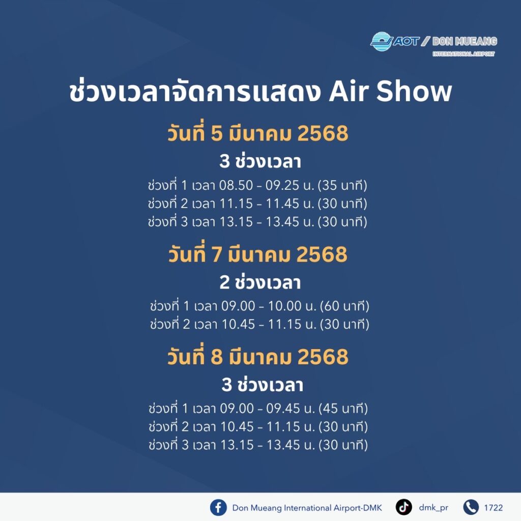 วันที่ 8 มีนาคม 2568 จัดการแสดงภาคอากาศ (Air Show) 3 ช่วงเวลา ได้แก่