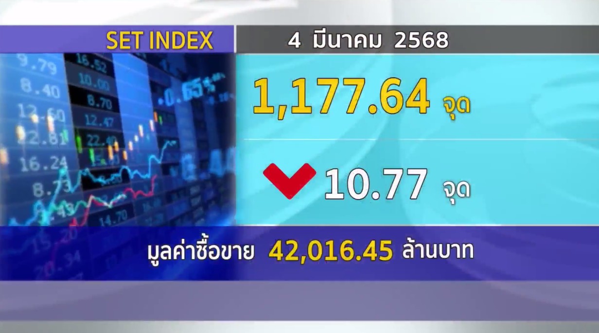 4 มี.ค. – SET ปิดวันนี้ที่ 1,177.64 จุด ลดลง 10.77 จุด (-0.91%) มูลค่าการซื้อขาย 42,064.95 ล้านบาท