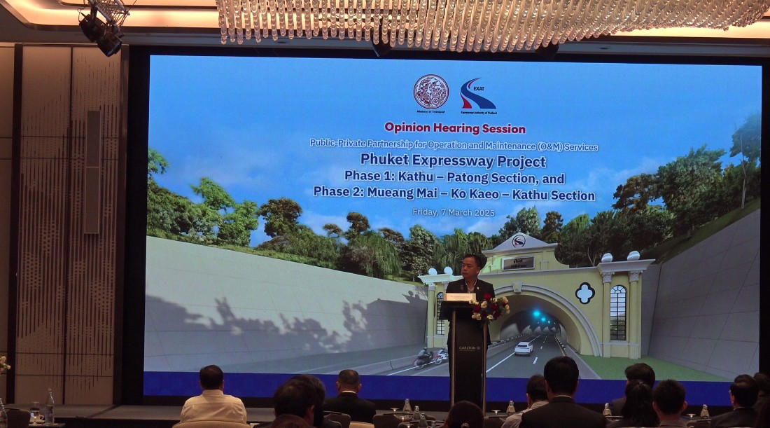 การทางพิเศษแห่งประเทศไทย กระทรวงคมนาคม เปิดรับฟังความคิดเห็นจากภาคเอกชน (Opinion Hearing) งานศึกษาทบทวนความเหมาะสม และจัดทำรายงานการศึกษาและวิเคราะห์โครงการ ตามพระราชบัญญัติการร่วมลงทุนระหว่างรัฐและเอกชน พ.ศ. 2562 โครงการทางพิเศษจังหวัดภูเก็ต ระยะที่ 1 ช่วงกะทู้-ป่าตอง และระยะที่ 2 ช่วงเมืองใหม่-เกาะแก้ว-กะทู้ เพื่อนำความคิดเห็นของผู้มีส่วนเกี่ยวข้องทุกภาคส่วนมาประกอบการจัดทำรายงานการศึกษาและวิเคราะห์โครงการตามพระราชบัญญัติการร่วมลงทุนระหว่างรัฐและเอกชน พ.ศ. 2562 โดยมีนายสุรเชษฐ์ เหล่าพูลสุข ผู้ว่าการการทางพิเศษแห่งประเทศไทย เป็นประธาน