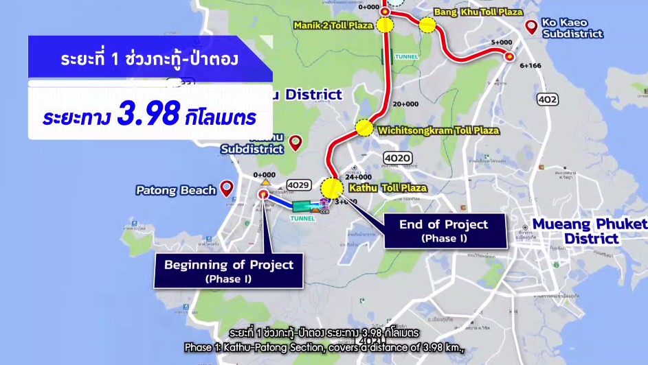 กทพ. ได้ดำเนินการศึกษาแนวทางการดำเนินโครงการทางพิเศษจังหวัดภูเก็ต โดยรัฐจะรับผิดชอบงานจัดกรรมสิทธิ์ที่ดิน กทพ. ดำเนินการออกแบบและก่อสร้างงานโยธา โครงการระยะที่ 1 ช่วงกะทู้-ป่าตอง และระยะที่ 2 ช่วงเมืองใหม่-เกาะแก้ว-กะทู้ สำหรับการก่อสร้างงานระบบ และการบริหารจัดการและบำรุงรักษา (Operation & Maintenance: O&M) ของโครงการทั้ง 2 ระยะ เช่น งานระบบจัดเก็บค่าผ่านทาง และระบบควบคุมจราจร เป็นต้น กทพ. ได้เห็นถึงความสำคัญและศักยภาพของเอกชน ดังนั้น จึงได้เปิดโอกาสให้เอกชนร่วมลงทุนโครงการ โดย มูลค่าเงินลงทุนโครงการ ประกอบด้วย ค่าจัดกรรมสิทธิ์ที่ดิน ค่าก่อสร้างงานโยธา (รวมค่าควบคุมงานก่อสร้าง) และค่าก่อสร้างงานระบบจัดเก็บค่าผ่านทางและระบบควบคุมจราจร (งานระบบ) ของโครงการ ระยะที่ 1