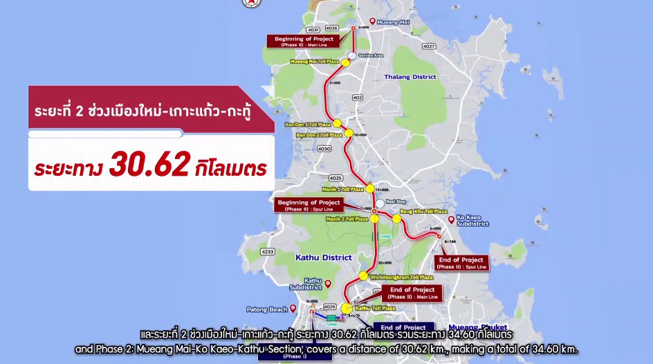 นายสุรเชษฐ์ เปิดเผยว่า การทางพิเศษแห่งประเทศไทย (กทพ.) ได้ดำเนินโครงการทางพิเศษจังหวัดภูเก็ต เพื่อยกระดับโครงสร้างพื้นฐานด้านคมนาคมทางถนน แก้ไขปัญหาการจราจร และอำนวยความสะดวกรวดเร็วในการเดินทางให้กับคนในพื้นที่และนักท่องเที่ยว ประกอบด้วยโครงการทางพิเศษ 2 ระยะ ได้แก่ โครงการระยะที่ 1 ช่วงกะทู้-ป่าตอง มีระยะทาง 3.98 กิโลเมตร และโครงการระยะที่ 2 ช่วงเมืองใหม่-เกาะแก้ว-กะทู้ มีระยะทาง 30.62 กิโลเมตร รวมระยะทางของโครงการทั้ง 2 ระยะ มีระยะทาง 34.60 กิโลเมตร