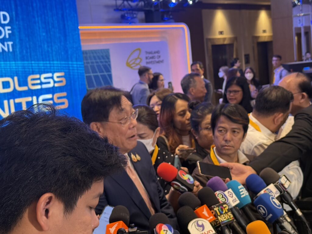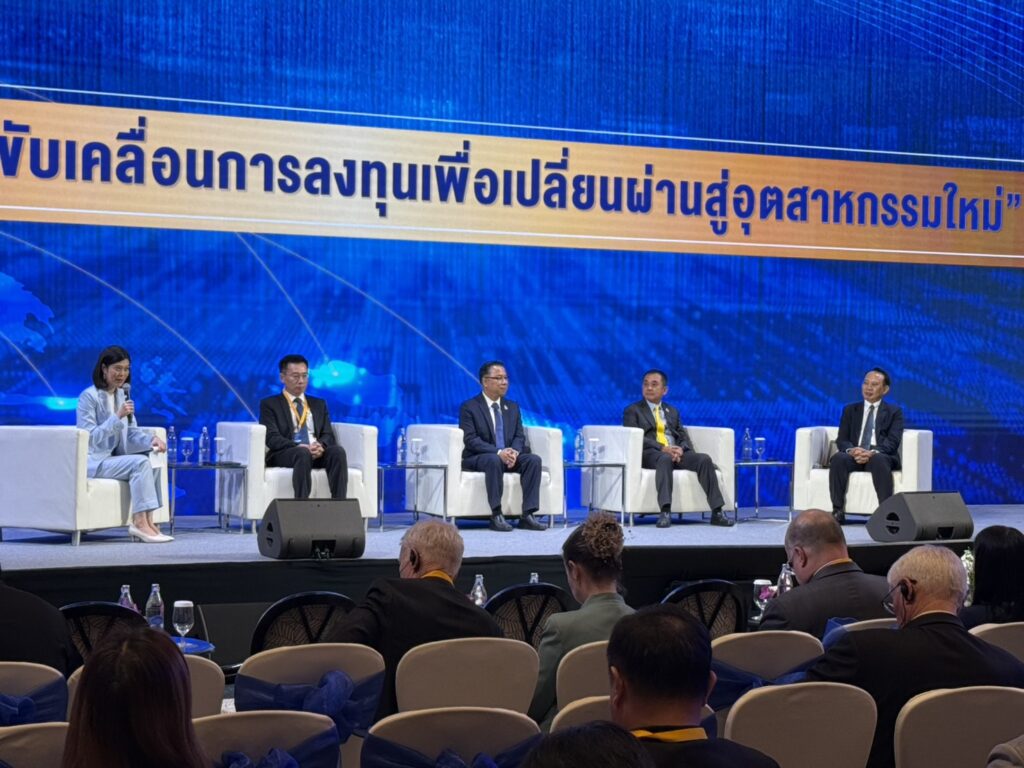 นายนฤตม์ เทอดสถีรศักดิ์ เลขาธิการบีโอไอ กล่าวเสวนาในหัวข้อ “การขับเคลื่อนการลงทุนเพื่อเปลี่ยนผ่านสู่อุตสาหกรรมใหม่ ว่า ไทยต้องสร้างจุดแข็งใหม่ในอุตสาหกรรม 5 สาขา คือ 1.การส่งเสริมในอุตสาหกรรม BCG ซึ่งในปี 2565-2567 มีการขอรับส่งเสริมการลงทุนจำนวน 2,523 โครงการ มูลค่าการลงทุน 5.4 แสนล้านบาท เช่น การผลิตเชื้อเพลิงชีวภาพ SAF ในอุตสาหกรรมการบิน การผลิต Cellulosic Enzyme จากวัตถุดิบดิบธรรมชาติเป็นน้ำตาลกลูโคส การผลิตพลาสติกชีวภาพ 2.การส่งเสริมการลงทุนในอุตสาหกรรมยานยนต์ อีวี และชิ้นส่วน ในปี 2565-2567 มีการขอรับส่งเสริมการลงทุนจำนวน 644 โครงการ มูลค่าการลงทุน 2.8 แสนล้านบาท เช่น MAZDA มีแผนขยายการลงทุนเพิ่มอีก 5 พันล้านบาท NISSAN มีแผนผลิต HEV รุ่นใหม่ MITSUBISHI MOTOR มีแผนเปิดตัว HEV รุ่นใหม่ และ ISUZU จะเริ่มผลิตรถกระบะ BEV เพื่อส่งออกไปนอร์เวย์ในปีนี้ 3. การส่งเสริมการลงทุนในอุตสาหกรรมเซมิคอนดักเตอร์และอิเล็กทรอนิคส์ขั้นสูง ในปี 2565-2567 มีการขอรับส่งเสริมการลงทุนจำนวน 406 โครงการ มูลค่าการลงทุน 6.1 แสนล้านบาท 4. การส่งเสริมการลงทุนในอุตสาหกรรมดิจิทัลในปี 2565-2567 มีการขอรับส่งเสริมการลงทุนจำนวน 27 โครงการ มูลค่าการลงทุน 2.9 แสนล้านบาท และ 5.การส่งเสริมการลงทุนใน International Business Center