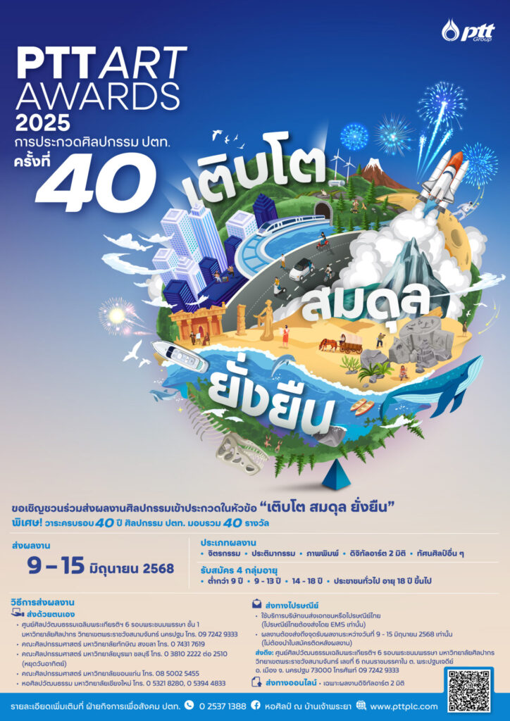 4 เม.ย. – PTT Art Awards 2025 เชิญส่งผลงานเข้าประกวดศิลปกรรม ปตท. ครั้งที่ 40 ในหัวข้อ “เติบโต สมดุล ยั่งยืน”