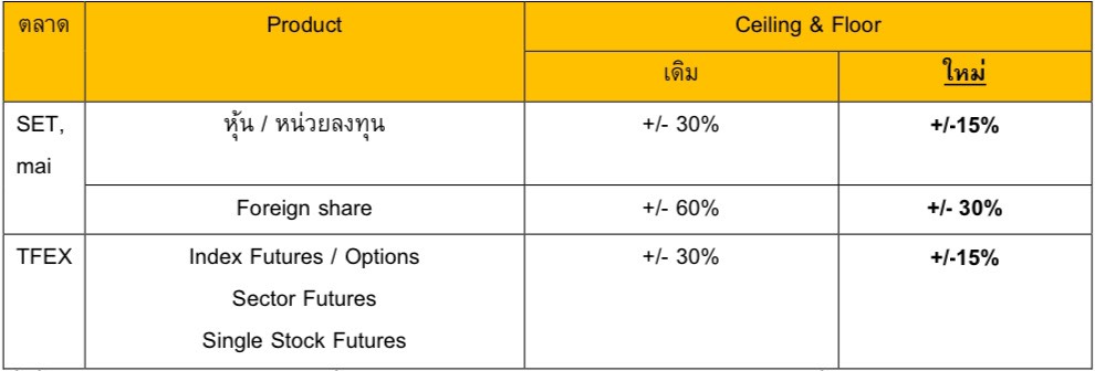 1.ปรับ Ceiling & Floor สำหรับทั้ง SET, mai และ TFEX