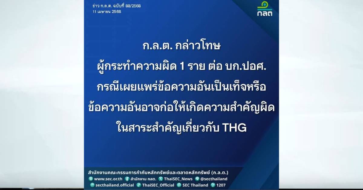 สำนักงานคณะกรรมการกำกับหลักทรัพย์และตลาดหลักทรัพย์ (ก.ล.ต.) ได้รับข้อมูลจากตลาดหลักทรัพย์แห่งประเทศไทย เมื่อเดือนตุลาคม 2567 และดำเนินการตรวจสอบเพิ่มเติม กรณีการให้สัมภาษณ์ของนายบุญ ผ่านสื่อมวลชนเมื่อวันที่ 25 กันยายน 2567 ว่า ตนและครอบครัวไม่เคยนำหุ้น THG ที่ถือไปจำนำหรือกู้เพื่อขอสินเชื่อทั้งในและนอกตลาด ไม่กล้าทำ เพราะเป็นผู้ถือหุ้นใหญ่ นั้น แต่จากการตรวจสอบพบพยานหลักฐานที่พิจารณาได้ว่า การให้สัมภาษณ์ดังกล่าวไม่ตรงกับข้อเท็จจริงที่พบว่านายบุญและบุคคลในกลุ่มวนาสินมีการจำนำหุ้น THG ไว้กับบุคคลหลายรายในจำนวนที่มีนัยสำคัญ และหุ้นดังกล่าวบางส่วนได้ถูกบังคับจำนำไปขายทอดตลาดแล้ว และส่วนที่เหลือมีโอกาสสูงที่จะเปลี่ยนแปลงไปเป็นของบุคคลอื่น