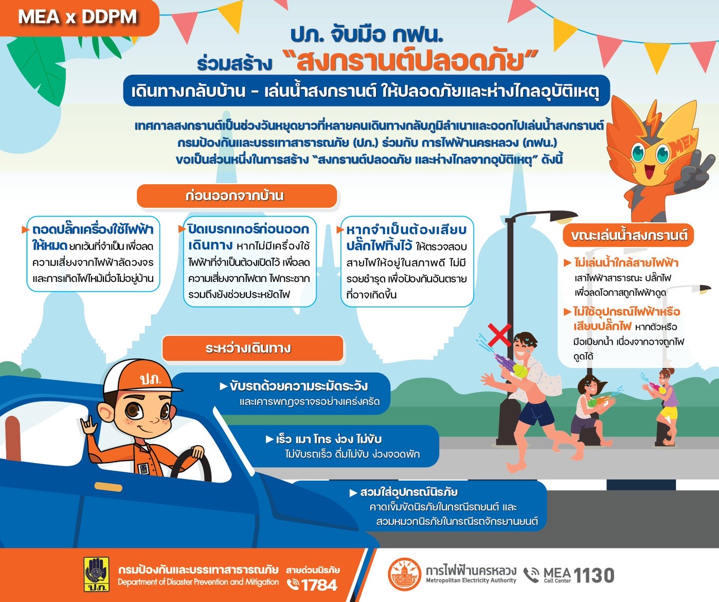 กรุงเทพฯ 11 เม.ย. – ปภ. จับมือ กฟน. ร่วมสร้าง “สงกรานต์ปลอดภัย” เดินทางกลับบ้าน – เล่นน้ำสงกรานต์อย่างไร ให้ปลอดภัยและห่างไกลอุบัติเหตุ