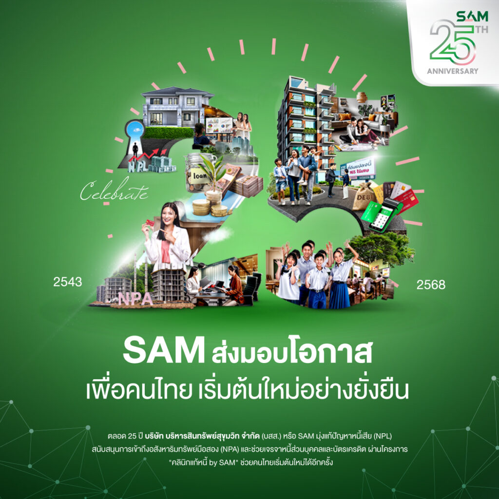 กรุงเทพฯ 18 เม.ย. – SAM ครบรอบ 25 ปี คิกออฟมาตรการพิเศษขยายความช่วยเหลือครอบคลุมลูกค้าทุกกลุ่ม ทั้งปรับหนี้ NPL และคลินิกแก้หนี้ พร้อมจัดโปรโมชัน NPA