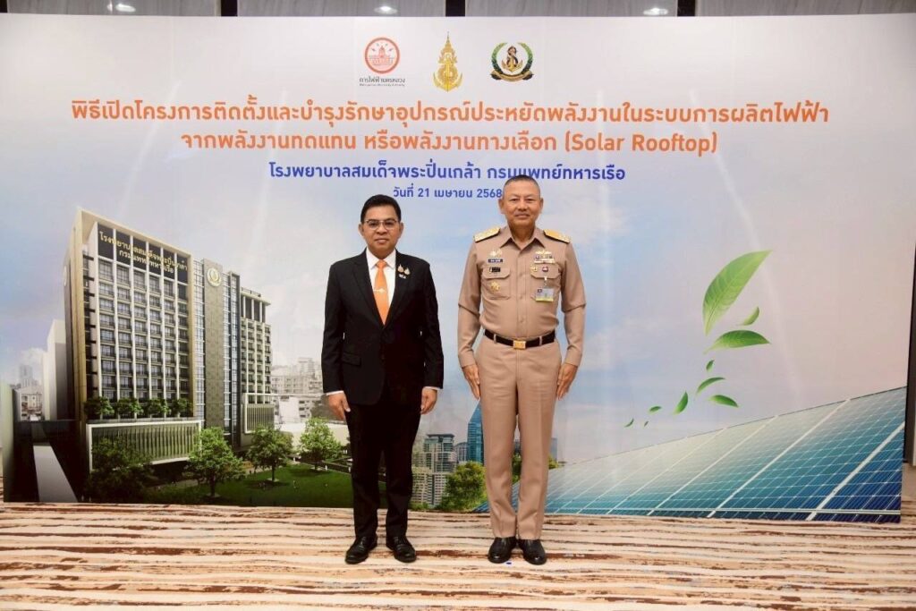กรุงเทพฯ 21 เม.ย. – MEA ร่วมกับโรงพยาบาลสมเด็จพระปิ่นเกล้า กรมแพทย์ทหารเรือ เปิดการใช้งานระบบ Solar Rooftop เพื่อพลังงานสะอาดอย่างยั่งยืน