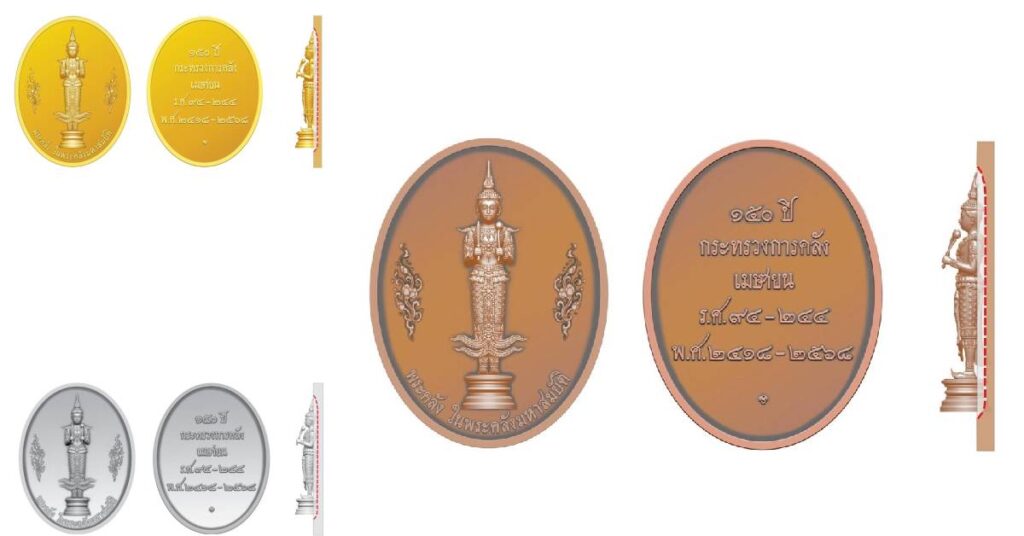 - ชนิดทองคำ 96.5% ความสูง 26 มิลลิเมตร น้ำหนัก 19.50 กรัม ราคาเหรียญละ 150,000.- บาท ผลิตตามยอดจอง ไม่เกิน 150 เหรียญ พร้อมเลเซอร์หมายเลขลำดับเหรียญ