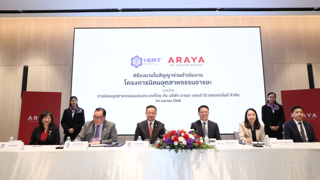กรุงเทพฯ 24 เม.ย.-การนิคมอุตสาหกรรมแห่งประเทศไทย (กนอ.) จับมือ บริษัท อารยะ แลนด์ ดีเวลลอปเม้นต์ จำกัด เปิดตัวนิคมอุตสาหกรรมเชิงนิเวศครบวงจร กว่า 1,891 ไร่ บนพื้นที่ของ “อารยะ ดิ อีสเทิร์น เกตเวย์” จ.สมุทรปราการรองรับอุตสาหกรรมแห่งอนาคต ทั้งเซมิคอนดักเตอร์-EV- Data Center ตั้งเป้าดึงดูดเมกะโปรเจกต์ลงทุน สร้างระบบนิเวศอุตสาหกรรม-นวัตกรรมที่ยั่งยืน ขับเคลื่อนเศรษฐกิจไทยสู่เวทีโลก จับตากำแพงภาษีสหรัฐ