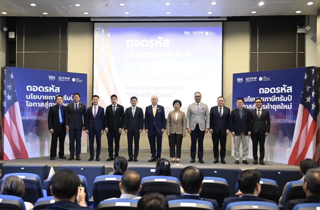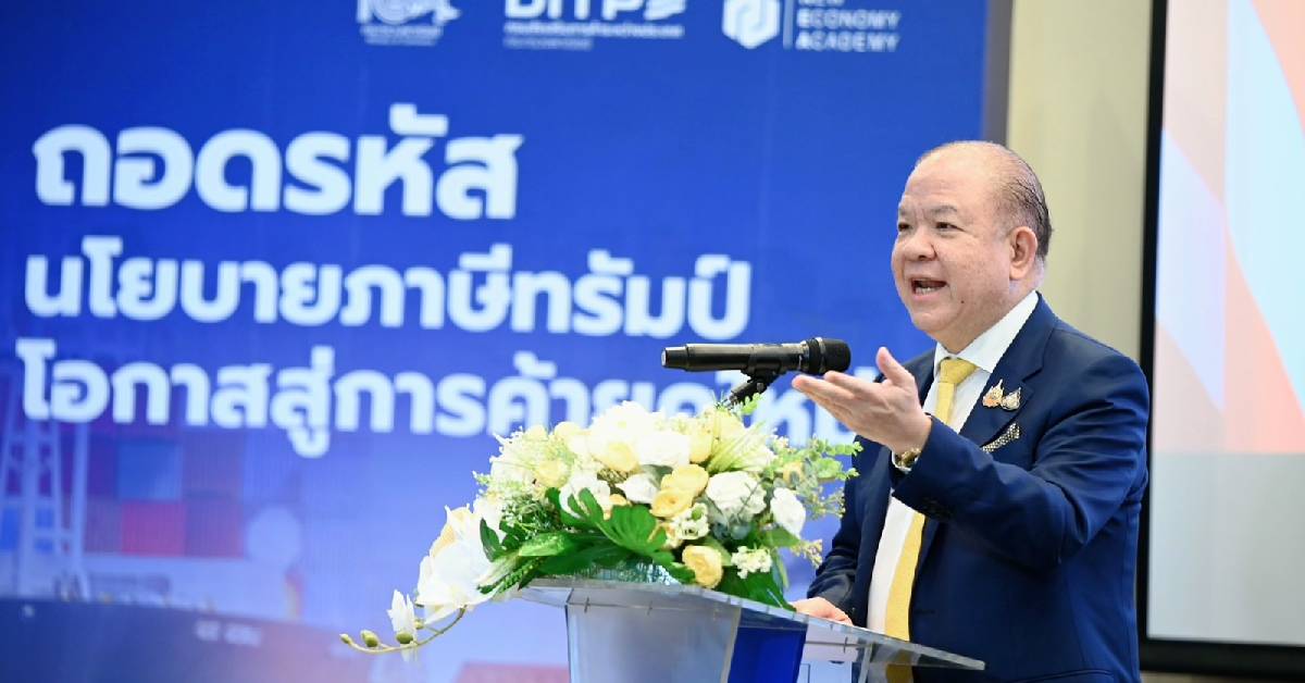 นายพิชัย นริพทะพันธุ์ รัฐมนตรีว่าการกระทรวงพาณิชย์ กล่าวในงานเสวนา “ถอดรหัสนโยบายภาษีทรัมป์ :โอกาสสู่การค้ายุคใหม่” ว่า ในภาวะวิกฤตจะมีโอกาส ต้องวิเคราะห์ว่าการที่หลายประเทศตั้งกำแพงภาษีเพิ่มขึ้น ประเทศไทยเองจะได้โอกาสอะไร เช่น สินค้าจีนที่ส่งไปสหรัฐถูกเก็บภาษีเพิ่มสูงขึ้นมาก แต่ขณะนี้ไทยถูกเก็บภาษีเพิ่มขึ้นเพียง 10% จึงต้องมองหาโอกาสว่ามีสินค้าใดบ้างที่จะส่งไปทดแทนสินค้าจากจีน โดยเฉพาะสินค้าไทยที่มีศักยภาพ เช่น ถุงมือยาง ยางรถยนต์ และอาหารสัตว์ ซึ่งปัจจุบันไทยครองส่วนแบ่งตลาดในสหรัฐฯ ประมาณ 20%