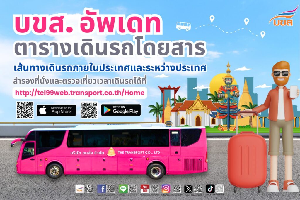 ผู้โดยสารสามารถสอบถามข้อมูลการเดินทางและจองตั๋ว บขส. ล่วงหน้าได้ที่เว็บไซต์ บขส. https://tcl99web.transport.co.th, Application E – ticket, Facebook Page : บขส. (www.facebook.com/BorKorSor99), Line : บขส.99 (Id : @TCL99) และช่องจำหน่ายตั๋วโดยสาร บขส. ทั่วประเทศ หรือ โทร. 0 – 2936 – 3660 ในวันและเวลาราชการ.-513-สำนักข่าวไทย