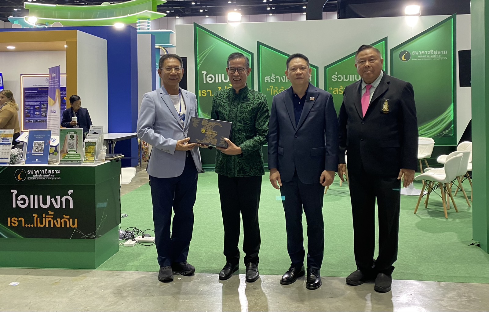 ดร.ทวีลาภ ฤทธาภิรมย์ กรรมการและผู้จัดการ ธนาคารอิสลามแห่งประเทศไทย และ พลตำรวจโท เผ่าไทย ทองธิว กรรมการและที่ปรึกษา บริษัท วิริยะประกันภัย จำกัด (มหาชน) พร้อมด้วย นายลวรณ แสงสนิท ปลัดกระทรวงการคลัง และ นายอัครุตม์ สนธยานนท์ รองปลัดกระทรวงการคลัง ด้านการบริหาร ร่วมแถลงข่าว ณ บูธ ไอแบงก์ ภายในงาน “MOF Journey 150 ปี เส้นทางการคลังไทย” เพื่อออกประกันตะกาฟุล “ตะมีน ลิลฮัจย์วัลอุมเราะห์” ประกันการเดินทางเพื่อการแสวงบุญในการประกอบพิธีฮัจย์และอุมเราะห์