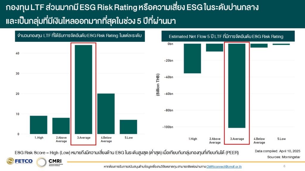 กรุงเทพฯ 6 พ.ค.- FETCO-CMRI เผยแรงเทขาย LTF ต่อเนื่อง 6 ปี หลังครบกำหนด มอง Thai ESGX สร้างโอกาสลงทุนใหม่แก่นักลงทุน