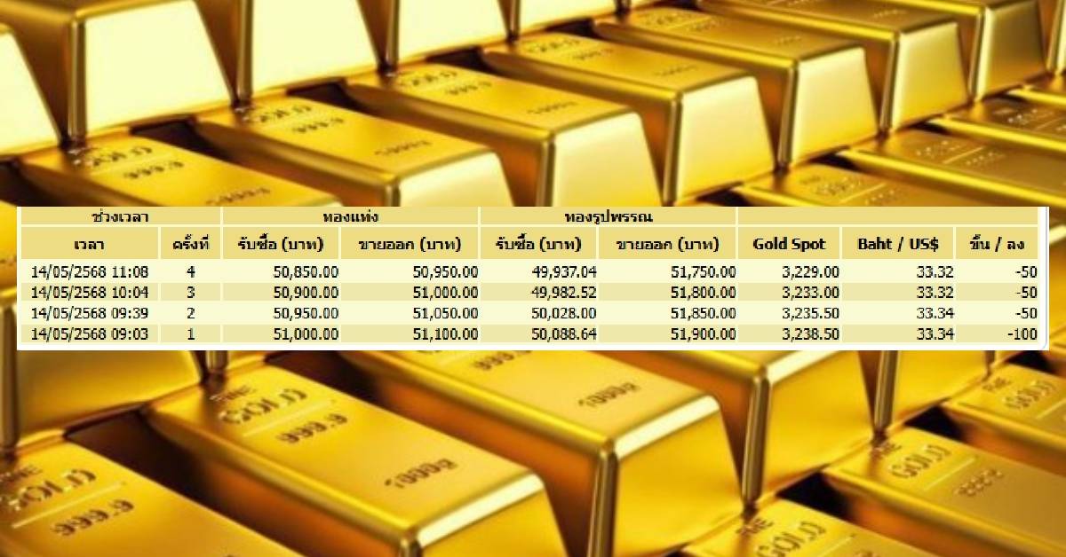 ส่วนราคาทองคำในไทย เช้านี้ปรับ 4 รอบ ตามราคา GOLD SPOT ราคาร่วงทุกรอบ จนถึงเวลา 12.00 น. ราคาทองคำร่วงรวม 250 บาท/บาททองคำ ทองแท่งขายออก 50,950 บาท ทองรูปพรรณ ขายออก 51,750 บาท. -511-สำนักข่าวไทย