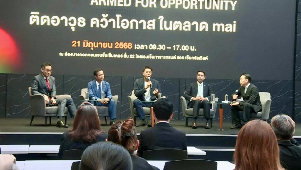 - SESSION 3: PANEL DISCUSSION หัวข้อ ถอดรหัสเทรนด์โลก : เจาะลึกผลกระทบจากสหรัฐฯ สู่โอกาสและ. ความท้าทายของธุรกิจ MID-SMALL CAP ไทย