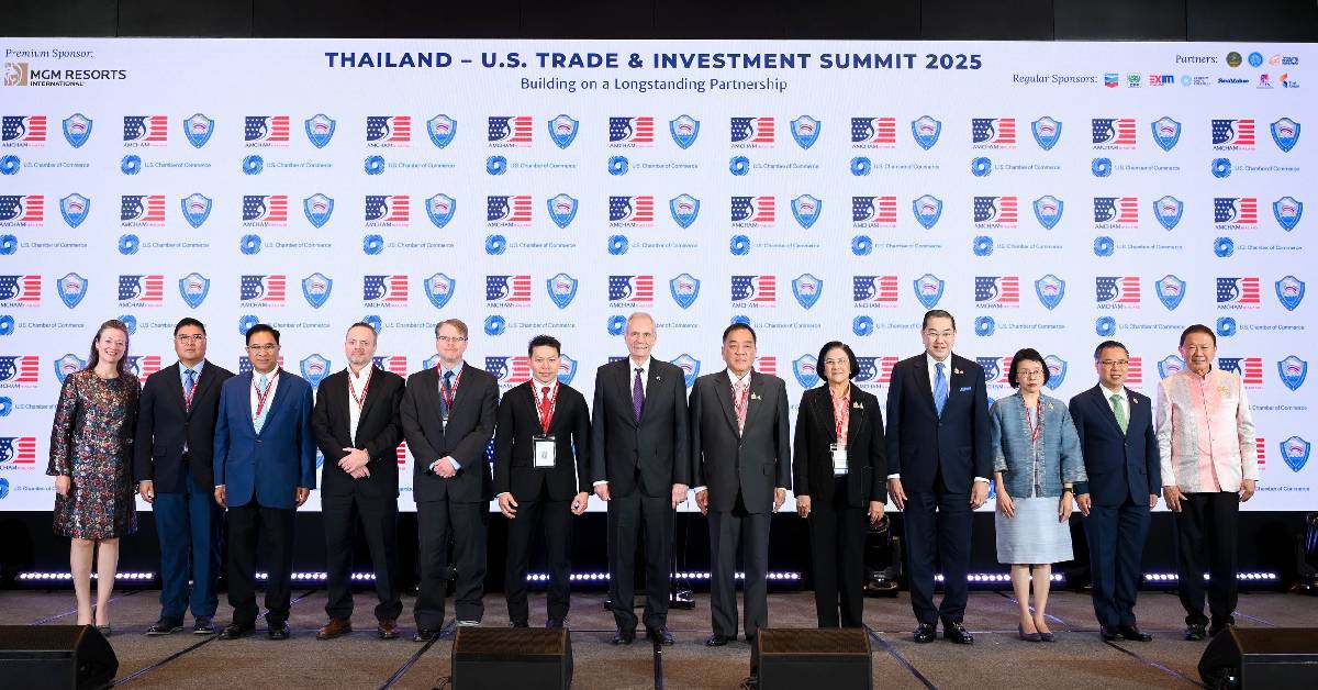 กรุงเทพฯ 20 พ.ค.- หอการค้าไทยและสภาหอการค้าแห่งประเทศไทย ร่วมกับ หอการค้าอเมริกันในประเทศไทย (AMCHAM) และหอการค้าประเทศสหรัฐอเมริกา (U.S. Chamber of Commerce) จัดงาน Thailand – U.S. Trade & Investment Summit 2025 : Building on a Longstanding Partnership แลกเปลี่ยนข้อมูลการค้า การลงทุน เศรษฐกิจ และส่งเสริมความร่วมมือด้านการค้าและการลงทุนระหว่างไทยและสหรัฐอเมริกา พร้อมหารือโอกาสและความท้าทายในอุตสาหกรรมต่างๆ ที่มีศักยภาพระหว่างกัน มีผู้แทนระดับสูงจากหน่วยภาครัฐและภาคเอกชนของไทยและสหรัฐอเมริกาเข้าร่วม
