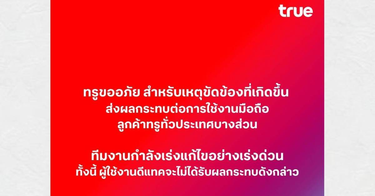 สำหรับเหตุการ์ดังกล่าว ได้สร้างความเดือดร้อนให้แก่ผู้ใช้บริการในช่วงเช้าหลายชั่วโมงและเริ่มใช้ได้ในช่วงบ่าย โดยทรูได้ โพสต์ข้อความขออภัย สำหรับเหตุขัดข้องที่เกิดขึ้น ส่งผลกระทบต่อการใช้งานมือถือลูกค้าทรูทั่วประเทศบางส่วน ทีมงานเร่งแก้ไขอย่างเร่งด่วน ทั้งนี้ ผู้ใช้งานดีแทคจะไม่ได้รับผลกระทบดังกล่าว. -511-สำนักข่าวไทย