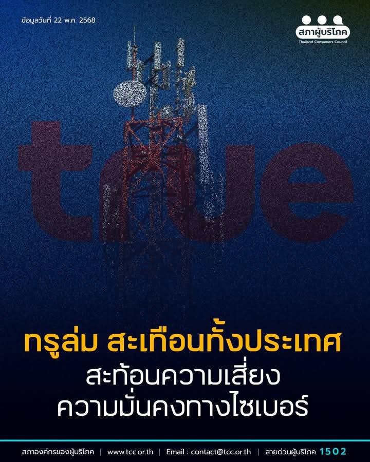 นายจุฑา สังขชาติ อนุกรรมการด้านการสื่อสาร โทรคมนาคม และเทคโนโลยีสารสนเทศ สภาผู้บริโภค ระบุว่า เหตุการณ์สัญญาณทรูล่มส่งผลกระทบในวงกว้าง เนื่องจากทรูมีผู้ใช้บริการมากกว่า 62.93 ล้านเลขหมาย คิดเป็นสัดส่วนประมาณ 57.79% ของตลาดโทรศัพท์เคลื่อนที่ทั้งหมดในประเทศไทย ซึ่งเห็นได้ชัดว่าความเสียหายของประชาชนกว่าครึ่งหนึ่งของประเทศที่ใช้บริการทรูนั้น อาจประเมินมูลค่าไม่ได้ โดยเมื่อสืบค้นข้อมูลเหตุการณ์อินเทอร์เน็ตล่มในช่วงที่ผ่านมา พบว่าเกิดเหตุการณ์ลักษณะนี้หลายครั้ง เช่น 30 พฤษภาคม 2567 อินเทอร์เน็ตทรูล่มนานกว่า 5 ชั่วโมง, 27 เมษายน 2568 อินเทอร์เน็ตบ้าน AIS Fibre ล่มนานหลายชั่วโมง, 10 พฤษภาคม 2567 สัญญาณมือถือของ AIS ขัดข้องในหลายพื้นที่ เป็นต้น