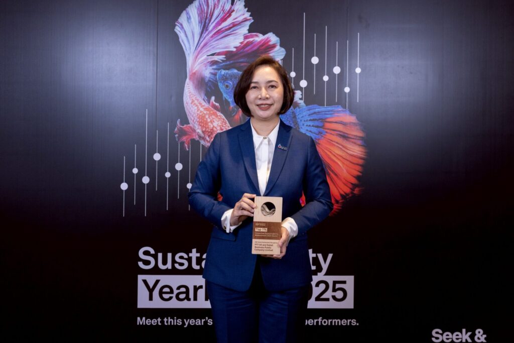 นางสาววรรณวิสาข์ สู่ศุภอรรถ ผู้จัดการฝ่ายบริหารความยั่งยืน และคุณภาพ ความปลอดภัย อาชีวอนามัย และสิ่งแวดล้อม บริษัท ปตท.น้ำมันและการค้าปลีก จำกัด (มหาชน) หรือ OR เป็นตัวแทนรับมอบโล่และประกาศเกียรติคุณในงาน S&P Global Sustainability Yearbook 2025 Distinction Ceremony ณ โรงแรม แบงค็อก แมริออท มาร์คีส์ ควีนส์ปาร์ค กรุงเทพฯ
