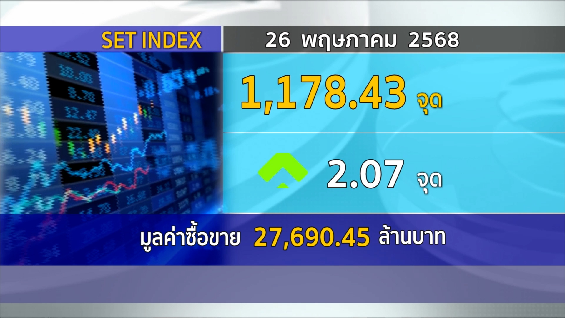 กทม. 26 พ.ค.- ตลาดหลักทรัพย์ฯ ปิดวันนี้ที่ 1,178.43 จุด เพิ่มขึ้น 2.07 จุด (+0.18%) มูลค่าซื้อขาย 27,690.45 ล้านบาท