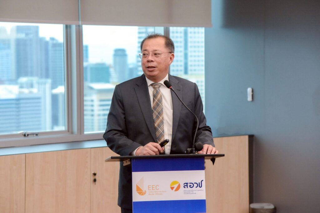 ดร. สุรชัย สถิตคุณารัตน์ ผู้อำนวยการ สอวช. กล่าวว่า สอวช. มีภารกิจในการกำหนดแนวทางในการนโยบายการพัฒนากำลังคนรองรับอุตสาหกรรมเป้าหมายพิเศษของประเทศ โดยขับเคลื่อนใน 4 มิติ ได้แก่ 1) Formulation ปรับนโยบายพัฒนากำลังคนตามความต้องการของประเทศ 2) Adoption จัดลำดับความสำคัญการพัฒนากำลังคนทักษะสูง ผ่านนวัตกรรมการจัดการศึกษา 3) Integration การสร้างแพลตฟอร์มการพัฒนากำลังคนสมรรถนะสูงตอบการลงทุนของภาคผลิตและบริการ (STEM Plus) 4) Evaluation กำหนดเป้าหมายสัดส่วนกำลังคนสมรรถนะสูง 25% และเพิ่มสัดส่วนหลักสูตรบูรณาการ และได้ย้ำว่าความร่วมมือระหว่าง อีอีซี และ สอวช. ในครั้งนี้ จะเป็นการร่วมกันทำงานเชิงรุก เพื่อสนับสนุนการพัฒนาบุคลากรให้ตรงกับความต้องการของภาคการผลิตและบริการ โดยมีพื้นที่อีอีซี เป็นพื้นที่เป้าหมายสำคัญ ด้วยเป็นศูนย์กลางด้านการผลิตและบริการของประเทศ. 513.-สำนักข่าวไทย