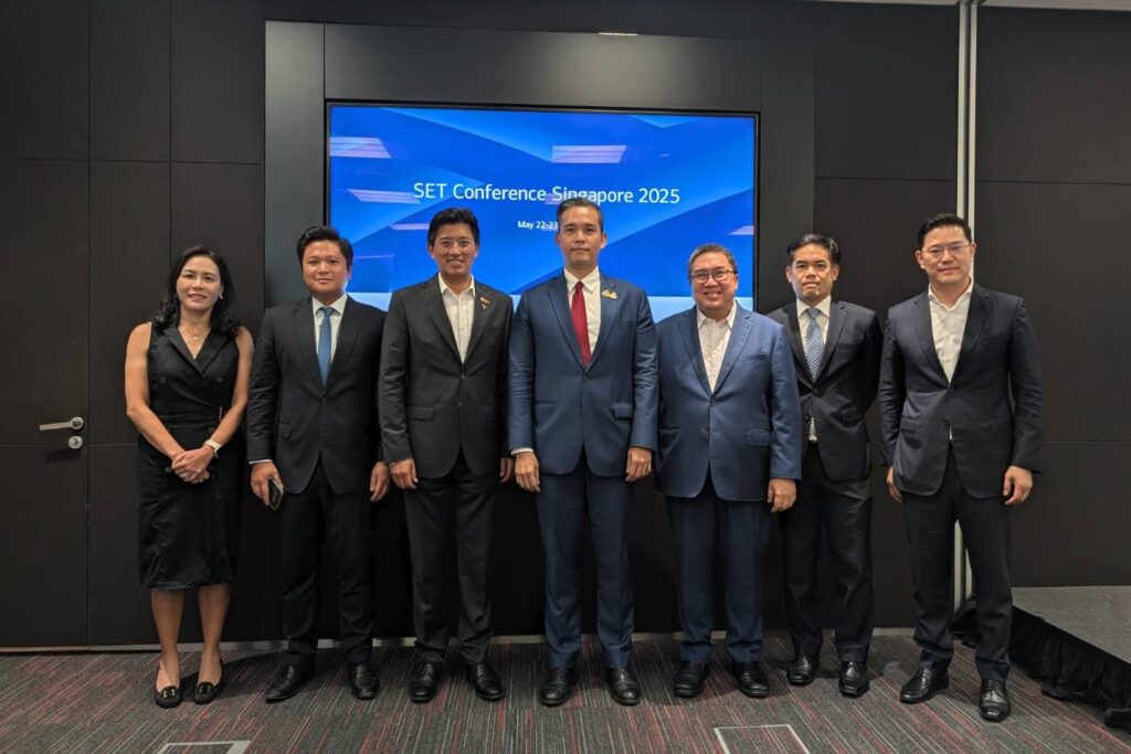 ตลาดหลักทรัพย์แห่งประเทศไทย (ตลท.) ร่วมกับ บริษัทหลักทรัพย์เกียรตินาคินภัทร จำกัด (มหาชน) และ Bank of America จัดโรดโชว์ “SET Singapore Roadshow 2025” นำโดยนายอัสสเดช คงสิริ กรรมการและผู้จัดการตลาดหลักทรัพย์ฯ พาบริษัทจดทะเบียน 7 แห่ง จากหลายหมวดธุรกิจร่วมให้ข้อมูลแผนการดำเนินงาน แสดงศักยภาพและความแข็งแกร่งของบริษัทจดทะเบียนไทย พร้อมด้วยภาครัฐ นายศึกษิษฏ์ ศรีจอมขวัญ รองเลขาธิการนายกรัฐมนตรี และนายพลช หุตะเจริญ ผู้อำนวยการกองพัฒนาตลาดตราสารหนี้ รักษาการในตำแหน่งที่ปรึกษาด้านตลาดตราสารหนี้ สำนักงานบริหารหนี้สาธารณะร่วมตอกย้ำนโยบายภาครัฐในการขับเคลื่อนเศรษฐกิจและการลงทุนไทย โดยได้รับความสนใจจากผู้ลงทุนสถาบันในสิงคโปร์เข้าร่วมงานกว่า 20 กองทุน เมื่อวันที่ 22-23 พฤษภาคม 2568.-516-สำนักข่าวไทย