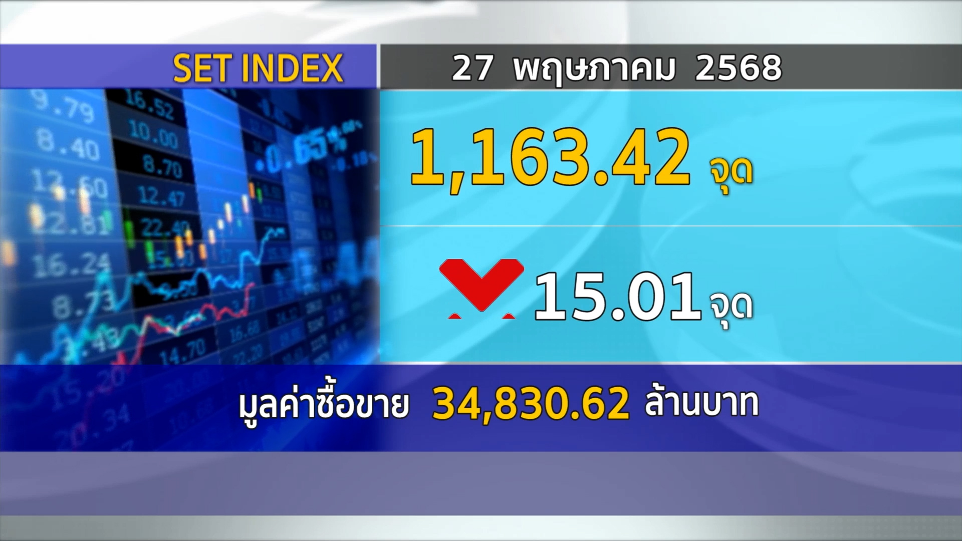 SET ปิดวันนี้ที่ 1,163.42 จุด ลดลง -15.01 จุด (-1.27%) มูลค่าซื้อขาย 34,845.62 ล้านบาท นักวิเคราะห์ฯ เผยตลาดหุ้นไทยวันนี้ลงไปแรง สภาพเศรษฐกิจซบเซายังกดดัน แนวโน้มการเจรจาการค้าไทย-สหรัฐน่าเป็นห่วงหลัง “ทรัมป์” กลับลำมาตรการภาษี EU ไป-มา อีกทั้งความขัดแย้งการเมืองในประเทศสร้างความกังวลเพิ่มเติม แนวโน้มวันพรุ่งนี้แนะติดตามการพิจารณาร่าง กม.งบประมาณปี 69 และการประชุมเฟด ให้แนวต้าน 1,180 จุด แนวรับ 1,160-1,150 จุด .-สำนักข่าวไทย