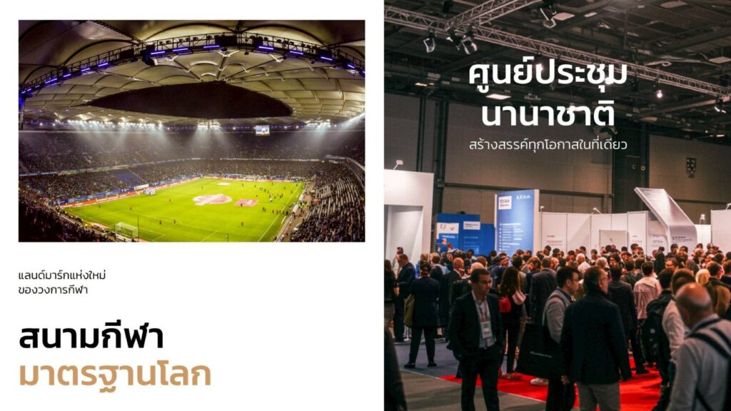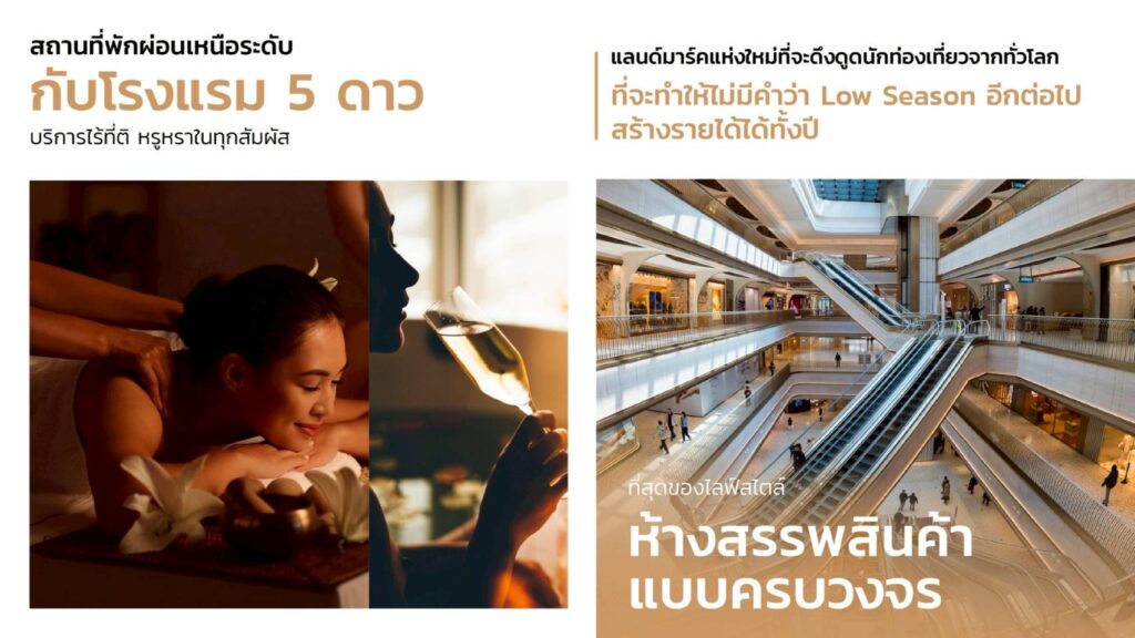 รวมทั้งการจัดคอนเสิร์ตฮอลล์ระดับเวิร์ลคลาส ปรับปรุงให้มี Indor Arena ระดับชาติแห่งใหม่ คนไทยเข้าถึงได้ รองรับฝน แดดร้อน การสร้างศูนย์การแสดงวัฒนธรรมและศิลปะไทย เพื่อนำสินค้าไปวางจำหน่าย โดยกำหมายกำหนดให้มีสัดส่วนถึงร้อยละ 10 สนามกีฬาขนาดใหญ่มาตรฐานโลก แลนด์มาร์กแห่งใหม่ของวงการกีฬา ศูนย์ประชุมนานาชาติ การนำห้างสรรพสินค้าขนาดใหญ่มาร่วมโครงการเป็นแบบครบวงจร หนุนให้เกิดโรงแรมระดับ 5 ดาว รองรับการเข้าพักของนักท่องเที่ยวจำนวนมาก การส่งเสริมร้านอาหารระดับมิชลินสตาร์ เพื่อเพิ่งการจ้างงาน เพื่อนำสินค้าเกษตรมายกระดับ การพัฒนาศูนย์นวัตกรรมสำหรับสตาร์ทอัพ รองรับเศรษฐกิจดิจิทัล