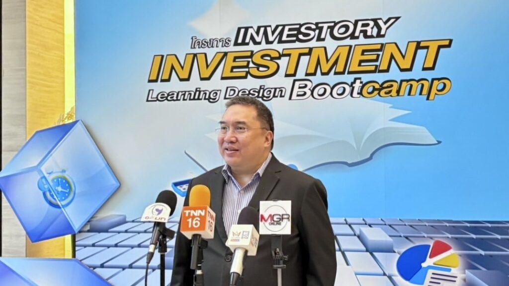 นายศรพล ตุลยะเสถียร รองผู้จัดการ ตลาดหลักทรัพย์แห่งประเทศไทย กล่าวว่า ตลาดหลักทรัพย์ฯ จัดโครงการ “INVESTORY Investment Learning Design Bootcamp” ต่อเนื่องเป็นปีที่ 3 เพื่อสนับสนุนองค์ความรู้ด้านการเงินการลงทุนให้แก่ครูระดับมัธยมศึกษาและส่งเสริมทักษะการออกแบบกระบวนการเรียนรู้อย่างสร้างสรรค์ เพื่อถ่ายทอดความรู้ให้แก่นักเรียนด้วยวิธีการที่ทันสมัยในรูปแบบ active learning หวังต่อยอดเป็นหลักสูตรด้านการเงินการลงทุนระดับมัธยมศึกษาเพื่อนำไปใช้ได้กับโรงเรียนทั่วประเทศ ทั้งนี้ ตลอดโครงการได้สร้างครูกระบวนกรสอนการลงทุนแล้ว 155 คน ครอบคลุม 35 จังหวัดทั่วประเทศ ขยายผลสู่นักเรียนรวม 24,804 คน
