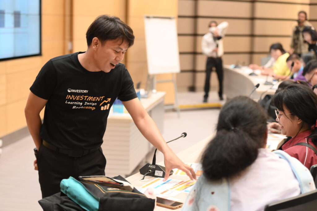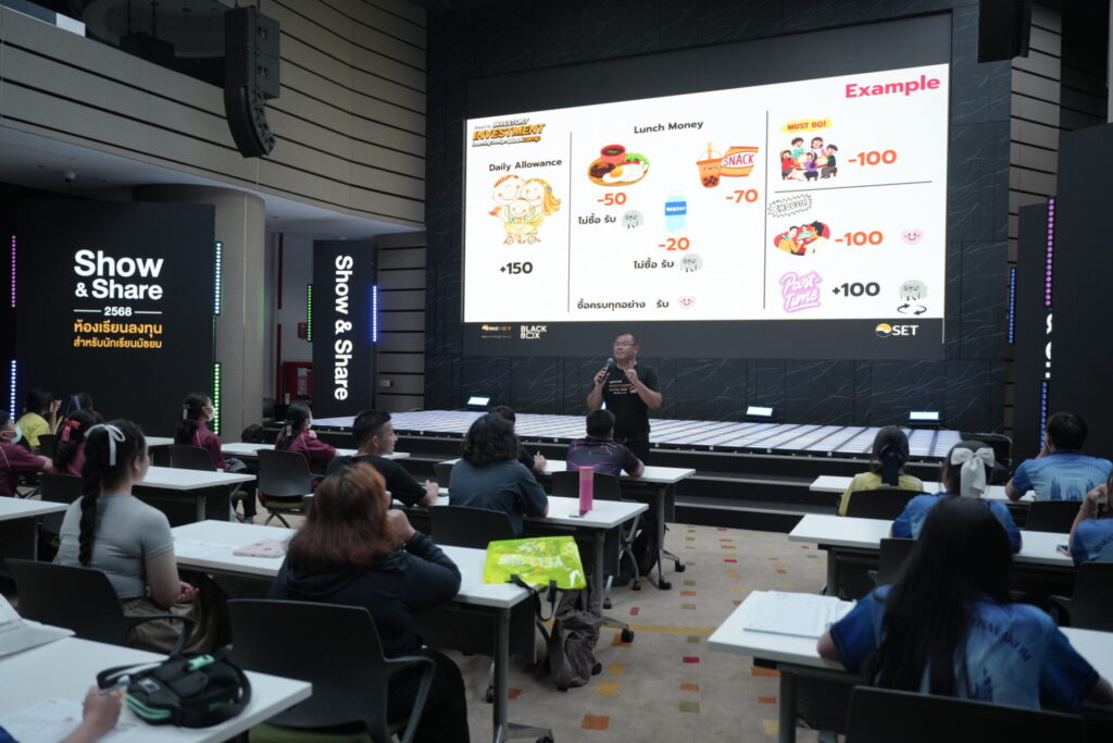 สำหรับกิจกรรม “Show & Share” ในโครงการ INVESTORY Investment Learning Design Bootcamp ปีนี้ เปิดเวทีให้ครูนำกิจกรรมและกระบวนการสอนที่ได้พัฒนาขึ้นเองและทดลองสอนในห้องเรียนจริงแล้ว มาสาธิตให้แก่ครูและสาธารณชนที่สนใจ ร่วมเรียนรู้ถึง 11 ห้องเรียนลงทุน นอกจากนี้ ยังมีครูกระบวนกรสอนการลงทุนรุ่นพี่ จาก 2 โรงเรียนนำประสบการณ์และไอเดียบันดาลใจที่ได้นำไปใช้จริงมาแบ่งปันกันอีกด้วย