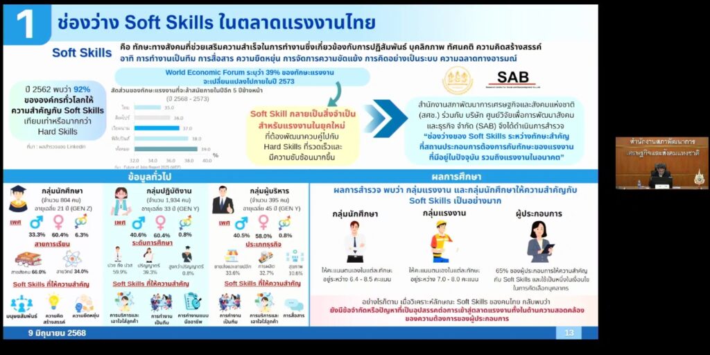 กรุงเทพฯ 9 มิ.ย. – สภาพัฒน์ฯ เผยภาวะสังไทย ไตรมาส 1/68 ชี้เด็กจบใหม่ยังเสี่ยงตกงาน แม้อัตราว่างงานลดเหลือ 0.88% ท่ามกลางเอสเอ็มอีทยอยปิดตัวมากขึ้นเพราะแข่งขันยาก ผลสำรวจยังพบคนไทย 1 ใน 3 นิยมใช้จ่ายเพื่อซื้อสินค้าหรู เสี่ยงติดหนี้เพิ่ม