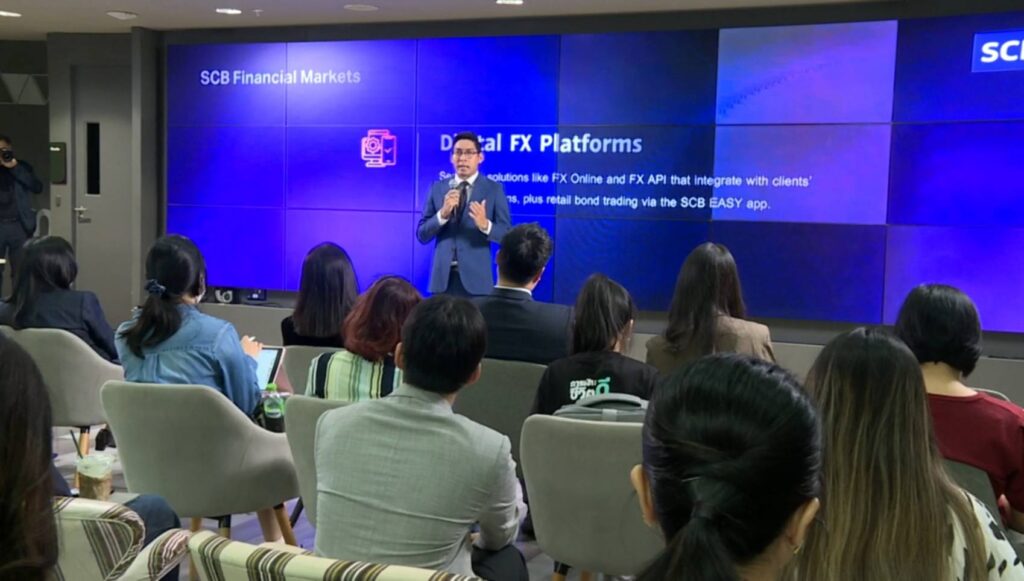 นายแพททริก ปูเลีย รองผู้จัดการใหญ่ ผู้บริหารสายงานตลาดการเงิน และ Head of Private Banking Relationship Management ธนาคารไทยพาณิชย์ เปิดเผยว่าตลาดการเงินมีความท้าทายสูงจากปัญหาภูมิรัฐศาสตร์ และสงครามการค้าที่กดดันภาคธุรกิจของไทย รวมถึงความไม่แน่นอนของมาตรการเรียกเก็บภาษีนำเข้า (Tariffs) จากนโยบายของนายโดนัลด์ ทรัมป์ ประธานาธิบดีสหรัฐอเมริกา ที่มีผลกระทบการดำเนินธุรกิจการค้าระหว่างประเทศ จึงเห็นภาพของค่าเงินบาทที่ผันผวนสูง โดยบางช่วงเงินบาทเปลี่ยนแปลงถึง 30-40 สตางค์ในช่วงข้ามคืน ด้วยบริบททางเศรษฐกิจเปลี่ยนแปลงอย่างรวดเร็ว SCB Financial Markets จึงปรับบทบาทให้เข้มข้นขึ้นสู่การเป็น “พันธมิตรเชิงกลยุทธ์ทางการเงิน” ให้กับลูกค้าธุรกิจ นักลงทุนสถาบันและลูกค้ารายย่อย ครอบคลุมทั้งด้านการบริหารความเสี่ยง การลงทุน และการเติบโตในตลาดโลก ผ่าน 5 ผลิตภัณฑ์และโซลูชันที่ตอบโจทย์ลูกค้าได้มากยิ่งขึ้น ได้แก่ ธุรกิจอัตราแลกเปลี่ยน (FX) และเครื่องมือบริหารความเสี่ยง, การขยายผลิตภัณฑ์ FX และคู่สกุลเงินใหม่ เพื่อรองรับสกุลเงินท้องถิ่น (Local Currency) ของประเทศปลายทาง, ช่องทางดิจิทัล อาทิ FX Online และ FX API , ผลิตภัณฑ์การลงทุนแบบ Structured Notes ที่ออกแบบโดยอิงกับหลากหลายสินทรัพย์, และบัญชีเงินฝากเงินตราต่างประเทศแบบอิเล็กทรอนิกส์ (E-FCD)
