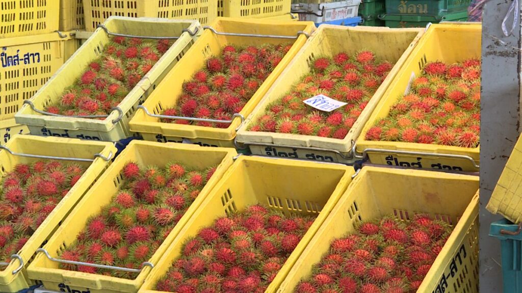 ตลาดสี่มุมเมือง ปทุมธานี 12 มิ.ย. – กรมการค้าภายใน เผยร่วมมือพันธมิตรกระจายผลไม้ภาคตะวันออกแล้ว 90% ยอมรับราคาผลไม้ปีนี้ต่ำกว่าปีที่แล้ว เตรียมแผนรองรับลำไยเหนือ และ ทุเรียนใต้ ที่จะผลผลิตจะเริ่มออกเดือนหน้า