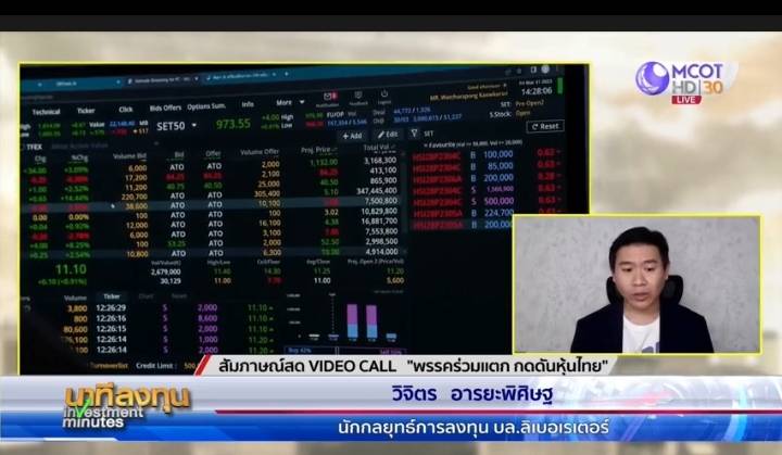 นายวิจิตร อารยะพิศิษฐ นักกลยุทธ์การลงทุน บล.ลิเบอเรเตอร์ เปิดเผยว่า ตลาดหุ้นไทยในวันนี้ ปรับตัวลดลงต่อเนื่องจากสัญญาณทางการเมืองที่ร้อนแรงมากจากกรณีคลิปเสียง และพรรคภูมิใจไทยออกจากพรรคร่วมรัฐบาล ทำให้กดดันตลาดหุ้นไทยอย่างต่อเนื่อง ในวันนี้จึงต้องจับตาท่าทีของพรรคเพื่อไทยว่าจะออกมาอย่างไร