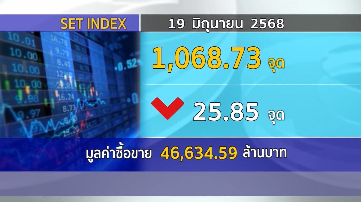 กทม. 19 มิ.ย.-SET ปิดวันนี้ที่ 1,068.73 จุด ลดลง 25.85 จุด (-2.36%) มูลค่าซื้อขาย 46,634.59 ล้านบาท