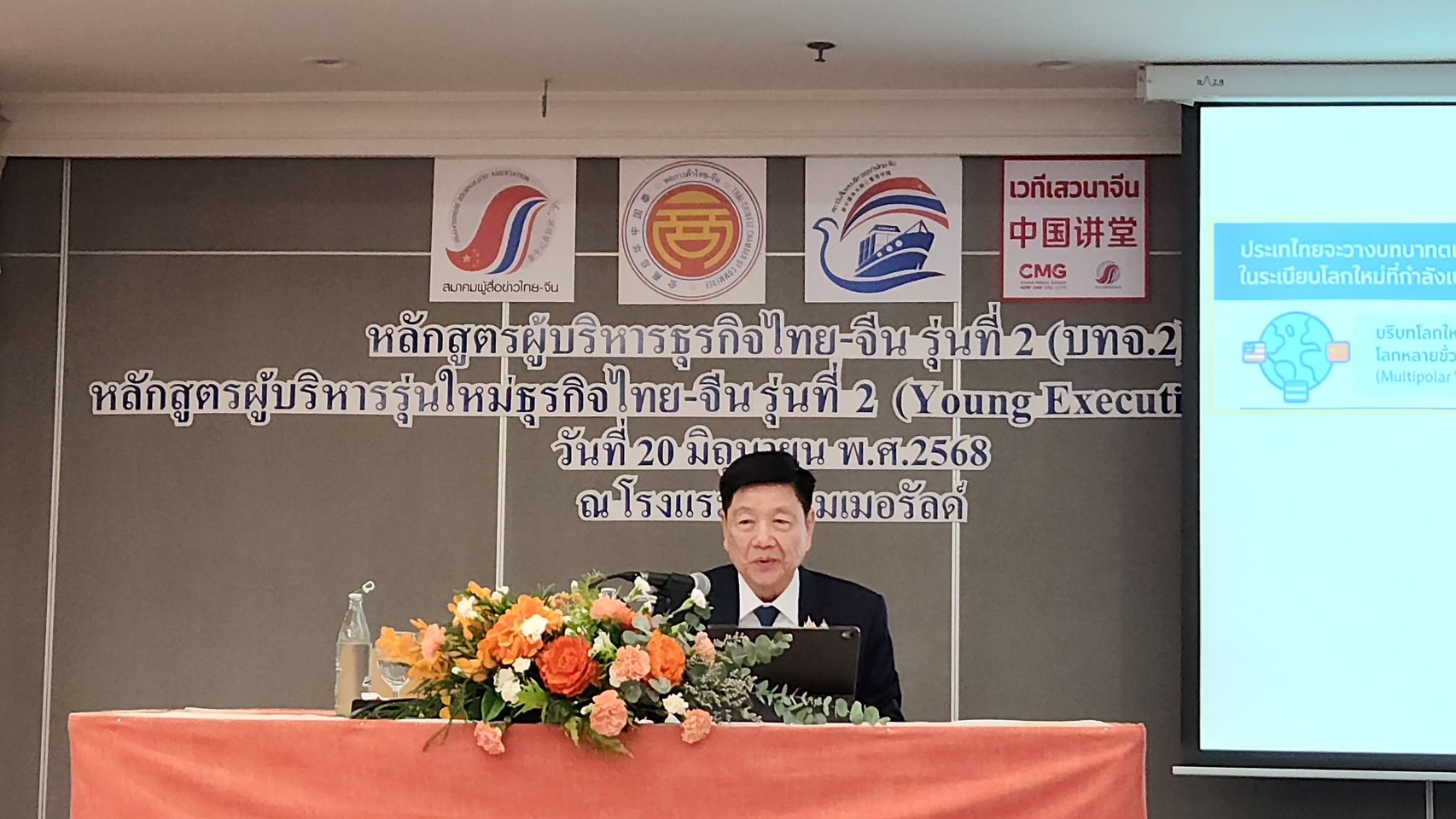 ดร.ณรงค์ศักดิ์ พุทธพรมงคล ประธานกรรมการหอการค้าไทย-จีน กล่าวบรรยายในหลักสูตรผู้บริหารธุรกิจไทย-จีน รุ่นที่ 2 (บทจ.2) และหลักสูตรผู้บริหารรุ่นใหม่ธุรกิจไทย-จีน รุ่นที่ 2 (Young Executive Program 2) หัวข้อ สงครามการค้ากับระเบียบโลกที่เปลี่ยนไป ว่า ประเทศไทยกำลังก้าวสู่การเปลี่ยนผ่านครั้งสำคัญสู่ระเบียบโลกใหม่ที่เต็มไปด้วยพลวัต ทั้งด้านเศรษฐกิจ การเมือง และเทคโนโลยี ความสัมพันธ์ระหว่างประเทศ ไม่ได้ยึดโยงอยู่กับแค่มหาอำนาจเพียงหนึ่งหรือสองประเทศอีกต่อไป แต่กำลังก้าวเข้าสู่โครงสร้าง “โลกหลายขั้ว” (Multipolar World) ที่ไม่ได้มีเพียงจีนกับสหรัฐอเมริกาเท่านั้น แต่รวมถึงกลุ่มภูมิภาคและประเทศสำคัญอื่นๆ เช่น อาเซียน อินเดีย ละตินอเมริกา หรือแม้กระทั่งกลุ่มความร่วมมืออย่างบริกส์ (BRICS) ที่กำลังมีบทบาทมากขึ้น ความตึงเครียดทางการค้ากำลังเปลี่ยนสู่การแข่งขันของมหาอำนาจในการกำหนดกติกาและทิศทางของโลก ประเทศไทยในฐานะประเทศขนาดกลางที่มีความเชื่อมโยงสูงกับเศรษฐกิจโลก ต้องปรับบทบาทและวางจุดยืนทางยุทธศาสตร์ให้ชัดเจนยิ่งขึ้น เพื่อรักษาเสถียรภาพ สร้างความแข็งแกร่ง และเพิ่มขีดความสามารถในการแข่งขันในเวทีโลกอย่างยั่งยืน โดยต้องกำหนดจุดยืนทางยุทธศาสตร์ของชาติอย่างชัดเจน ด้วยการวางตำแหน่งประเทศไทยให้เป็น “ศูนย์กลางความมั่นคงทางอาหาร” หรือ “ฮับการผลิตและโลจิสติกส์ของอาเซียน” รวมถึงการกำหนดจุดแข็งของตนเอง เช่น Soft Power ด้านวัฒนธรรม อาหาร และการท่องเที่ยว โดยยึดหลักผลประโยชน์ของชาติ ความยั่งยืน และความสมดุลในการดำเนินนโยบายระหว่างขั้วอำนาจต่างๆ อย่างชาญฉลาด การพัฒนาเศรษฐกิจให้สอดคล้องกับทิศทางโลกก็เป็นสิ่งสำคัญ ด้วยการส่งเสริมเศรษฐกิจสีเขียว (Green Economy) อย่างจริงจัง, ยกระดับมาตรฐาน ESG ให้เป็นสากล, และพัฒนาระบบการตรวจสอบย้อนกลับ (Traceability) และความโปร่งใสในห่วงโซ่อุปทาน เพื่อตอบสนองความต้องการของตลาดโลกและผู้บริโภคที่ให้ความสำคัญกับความยั่งยืนมากขึ้น