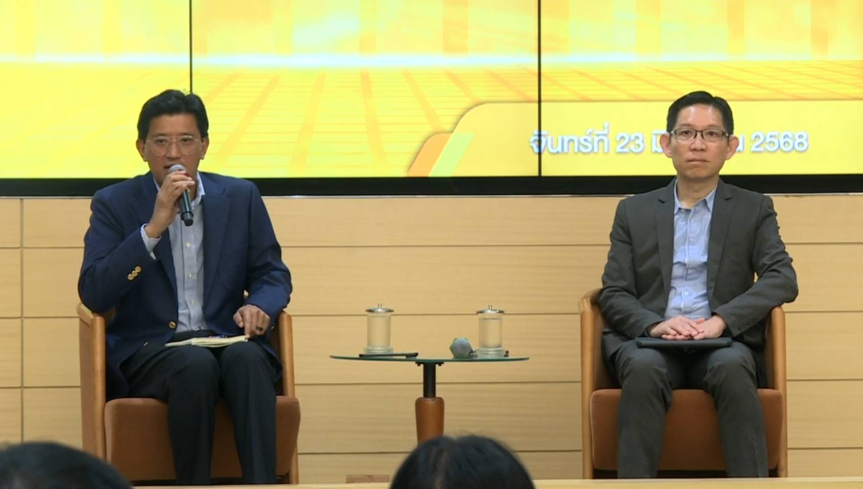 นายอัสสเดช คงสิริ กรรมการและผู้จัดการ ตลาดหลักทรัพย์แห่งประเทศไทย และนายรองรักษ์ พนาปวุฒิ รองผู้จัดการ หัวหน้าสายงานกฎหมาย และบริหารกิจกรรมเพื่อสังคม ตลาดหลักทรัพย์แห่งประเทศไทย ร่วมแถลงความจำเป็นในการ