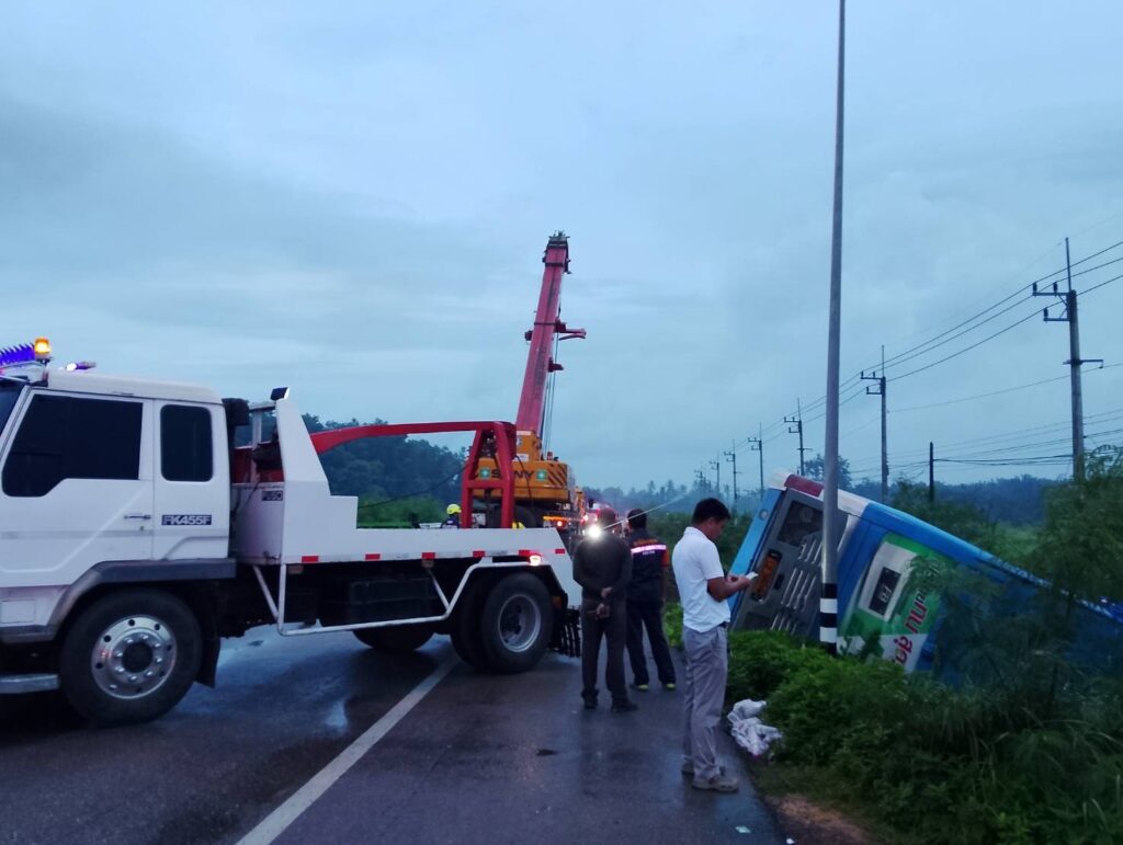 บริษัท ขนส่ง จำกัด (บขส.) แจ้งว่า จากกรณีรถกระบะแซงขวาแล้วเสียหลักชนกับรถโดยสาร ทำให้มีผู้บาดเจ็บ 8 ราย และไม่มีผู้เสียชีวิต บริเวณทางหลวงหมายเลข 41 (ขาล่องใต้) ตำบลครน อำเภอสวี จังหวัดชุมพร เมื่อวันที่ 23 มิถุนายน 2568 เวลา 02.38 น.