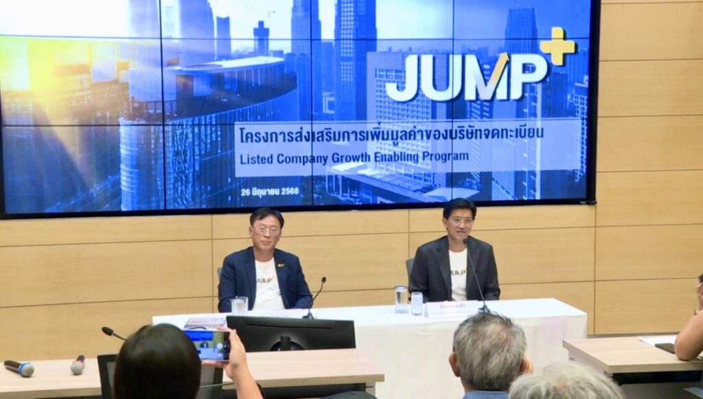 กรุงเทพฯ 26 มิ.ย. – ตลท.เปิดตัวโครงการ “JUMP+” ชูการส่งเสริม บจ. พัฒนาระยะยาว 3 ปี เปิดช่องทางติดตามความคืบหน้าแผนงาน บจ. ต่อเนื่อง โปร่งใส สร้างโอกาสทางธุรกิจ หนุนตลาดทุนไทย ตั้งเป้า 100 บจ.ภายในปีนี้