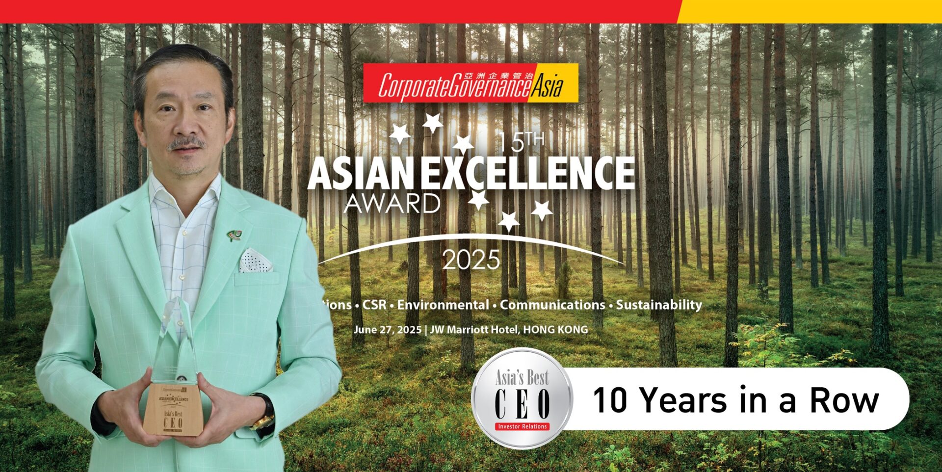 รางวัล 15th Asian Excellence Award และ รางวัล Sustainable Asia Award 2025 จัดโดยนิตยสาร Corporate Governance Asia พิจารณารางวัลจากข้อมูลองค์กรร่วมกับผลสำรวจความคิดเห็นของนักลงทุน นักวิเคราะห์ และผู้ทรงคุณวุฒิ ทั่วภูมิภาคเอเชีย เพื่อมอบรางวัลให้กับบุคคลหรือองค์กรที่มีการดำเนินธุรกิจอย่างยั่งยืนและมีธรรมาภิบาล พร้อมดูแลรับผิดชอบชุมชน สังคม และสิ่งแวดล้อมในระดับดีเยี่ยม. -517-สำนักข่าวไทย