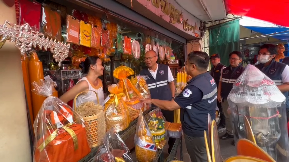 กรมการค้าภายใน จึงบูรณาการร่วมกับสำนักงานคณะกรรมการคุ้มครองผู้บริโภค (สคบ.) และกองบังคับการปราบปรามการกระทำผิดเกี่ยวกับการคุ้มครองผู้บริโภค (CIB) ลงพื้นที่ตรวจสอบผู้ผลิตและจำหน่ายชุดสังฆทานและชุดไทยธรรม ณ บริเวณแยกสี่กั๊กเสาชิงช้า เขตพระนคร กรุงเทพมหานคร ซึ่งเป็นสถานที่จำหน่ายสินค้า และเป็นผู้สั่งผลิตสินค้าชุดสังฆทาน ชุดไทยธรรม และเทียนพรรษา ที่เป็นร้านค้าชั้นนำในเขตกรุงเทพ
