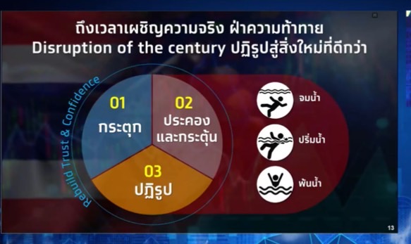 ขณะเดียวกัน ประเทศไทยยังต้องมีการลงทุนอีกมาก ซึ่งหากดูสัดส่วนเพดานหนี้สาธารณะปัจจุบันอยู่ที่ระดับ 65% จากเพดาน 70% อาจจะต้องมีการปรับเพดานขึ้น แต่จะใช้ทรัพยากรเหล่านั้นไปทำอะไร เป็นสิ่งที่ต้องมาช่วยกันทบทวน ในวิกฤติมีโอกาส ตอนนี้ในช่วงที่ประเทศไทยเจอหลายปัญหาถาโถมแต่ก็เป็นโอกาสที่จะเร่งสร้างความเชื่อมั่นให้กับระบบเศรษฐกิจของประเทศได้