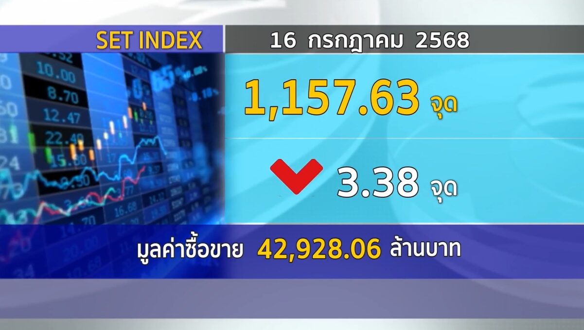 กทม. 16 ก.ค.-ตลาดหลักทรัพย์ฯ ปิดวันนี้ที่ 1,157.63 จุด ลดลง 3.38 จุด (-0.29%) มูลค่าซื้อขาย 42,928.06 ล้านบาท