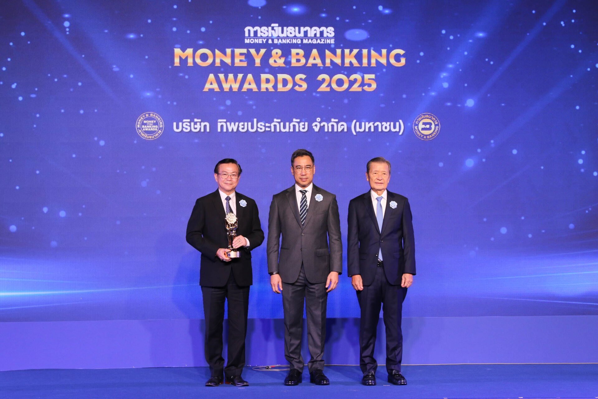 ดร.สมพร สืบถวิลกุล ประธานเจ้าหน้าที่บริหาร บริษัท ทิพย กรุ๊ป โฮลดิ้งส์ จำกัด (มหาชน) และกรรมการผู้จัดการใหญ่ บริษัท ทิพยประกันภัย จำกัด (มหาชน) เข้ารับรางวัลเกียรติยศ “บริษัทที่มีบริการยอดเยี่ยมด้านประกันวินาศภัย” จาก ดร.เศรษฐพุฒิ สุทธิวาทนฤพุฒิ ผู้ว่าการธนาคารแห่งประเทศไทย ซึ่งให้เกียรติเป็นประธานมอบรางวัล ภายในงาน Money & Banking Awards 2025 ณ โรงแรมไฮแอท รีเจนซี กรุงเทพฯ โดยมีนายสันติ วิริยะรังสฤษฎ์ ประธานบรรณาธิการ วารสารการเงินธนาคาร ร่วมแสดงความยินดี